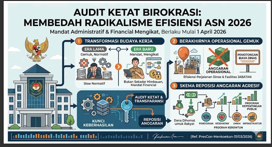 berikut adalah ringkasan mekanisme efisiensi anggaran dalam kebijakan transformasi budaya kerja per April 2026: