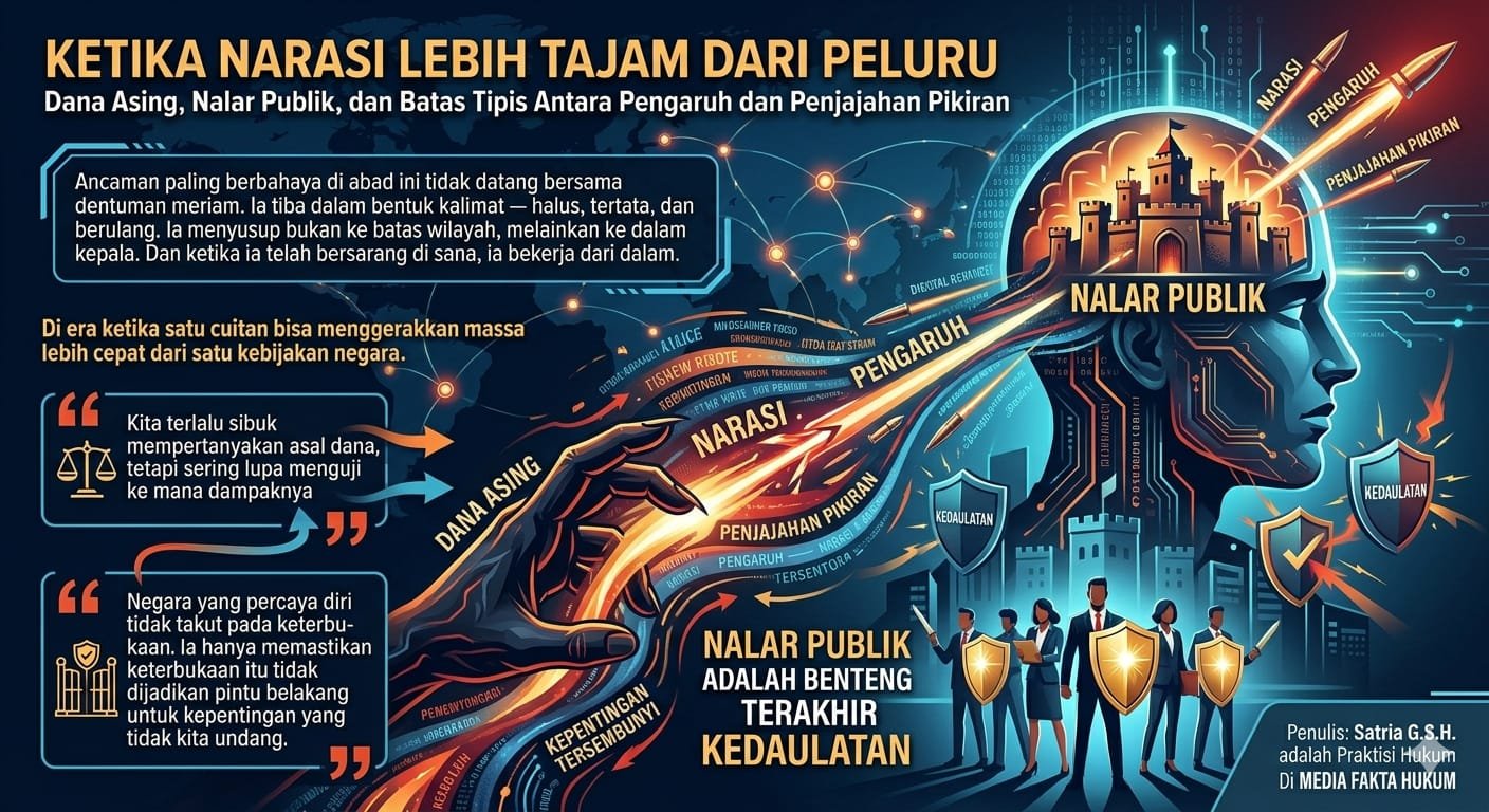 Dalam konteks itulah isu pendanaan asing harus kita tempatkan: bukan sebagai sumber ketakutan, melainkan sebagai pengingat bahwa di era modern, kedaulatan tidak hanya dijaga di batas wilayah. Ia dijaga — setiap hari — di dalam pikiran.
